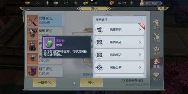 是强化装备的重要道具,随着装备部位强化等级越高,其需求量也就越高。