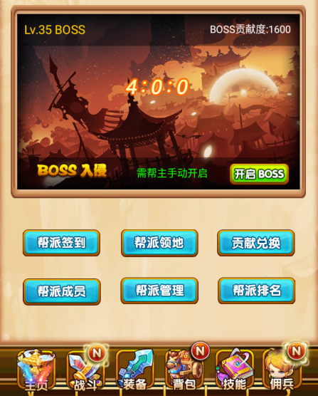 帮派每天有两次免费开启boss的机会,两次机会使用后将需要活跃值开启boss,只有会长