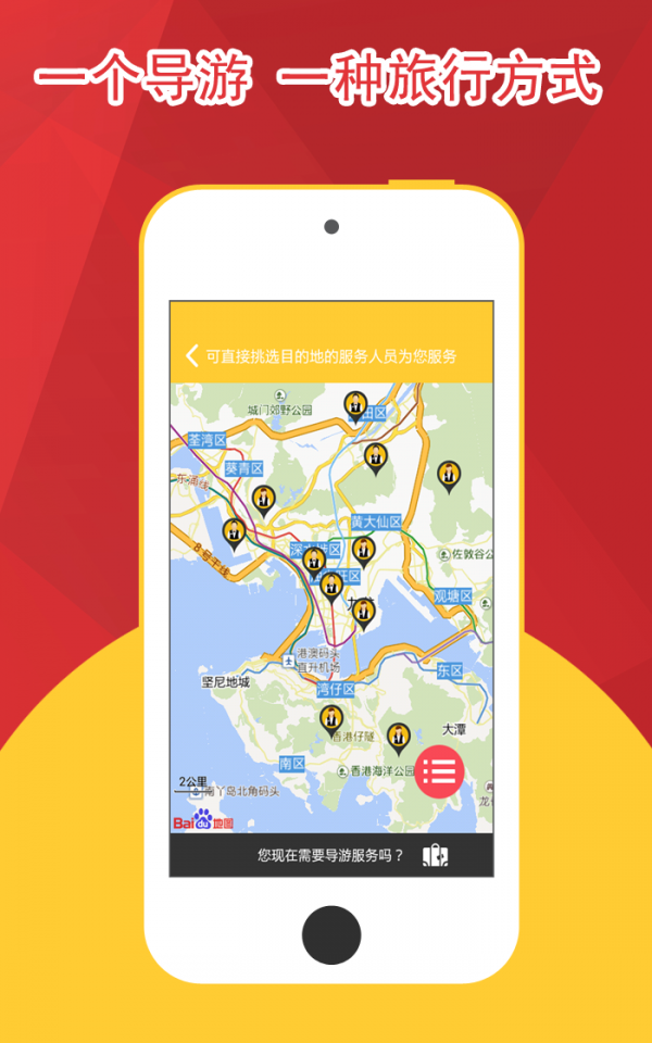 即时联系导游,半小时内提供旅行服务