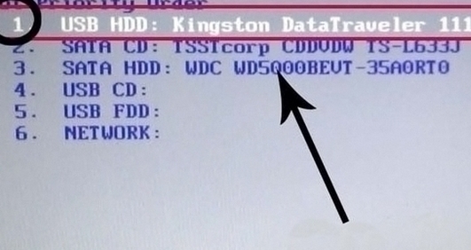 2、在启动项选择窗口中,选择usb驱动所在的位置,按回车键进入,如图所示: