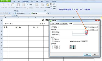 第四步:进入“工作表”设置页面,点击顶端标题栏后面“口”字型键。