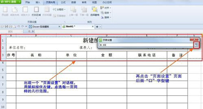 第五步:出现一个“页面设置”对话框,用鼠标按住左键,点选每一页同样的几行范围。