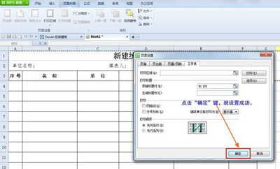 第六步:选好后,点击“页面设置”页面后面“口”字型键,就会返回“页面设置”页面,点击“确定”键,就设置成功。
