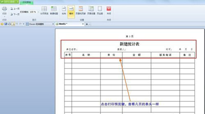 第七步:设置成功后,点击打印预览键,就能查看后面几页的情况。