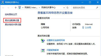 2、左上侧找到点击【更改适配器设置】 ,如图: