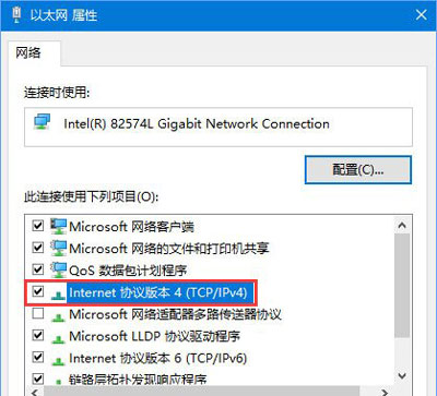 4、此时在弹出窗口中找到【Internet 协议版本4 (TCP/IPv4)】,选中后点击右下侧属性,或者双击打开;