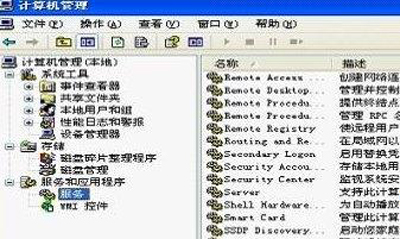 这种情况也比较常见,比如使用软件优化系统,结果无线的服务项被禁用而导致无法连接网络,以Windows XP为例,右击“我的电脑”→“管理”→“服务”,我们可以看到各个服务项的状态,如“wireless zero configuration” 、“Remote Procedure Call (RPC)”等。