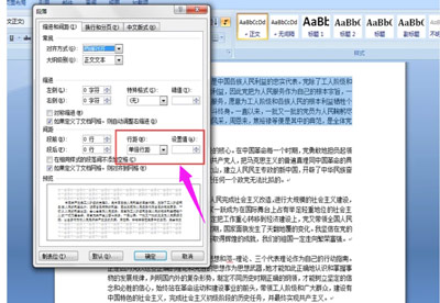 然后在右侧的“设置值”中设置好所需要的行距数值,你可以在下方的预览处看到预览效果,调整到你满意的行距效果之后点击确定。