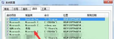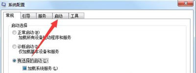 2、打开系统配置后,点击切换到“启动”选项卡。如下图