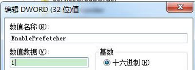 3、在右侧双击打开“EnablePrefetcher”值进入编辑窗口。如下图