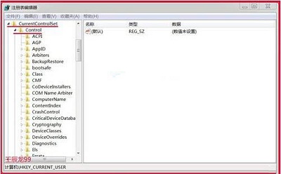 3、在SYSTEM的展开项中找到:CurrentControlSet,展开:CurrentControlSet,在CurrentControlSet展开项中找到Control并展开;如图所示: