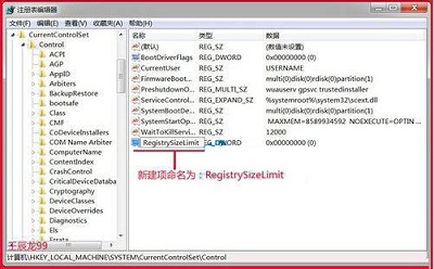 5、我们把新建项命名为:RegistrySizeLimit;如图所示: