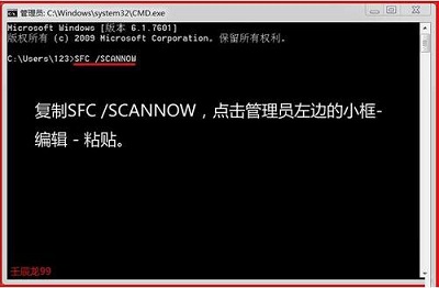 11、此时系统会自动扫描,扫描过程需要几分钟,当扫描进度提示到 100%后,退出管理员命令窗口;如图所示: