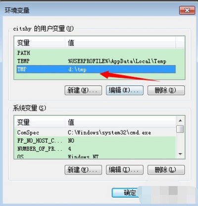 3,现在我们可以看见里面所在用户的“TEMP”和“TMP”变量,这“TEMP”就是临时文件夹。如图下所示;