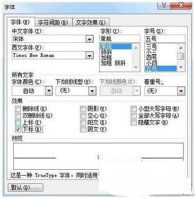 2、然后,在弹出的界面中勾选上标或下标,最后再点击确定即可。