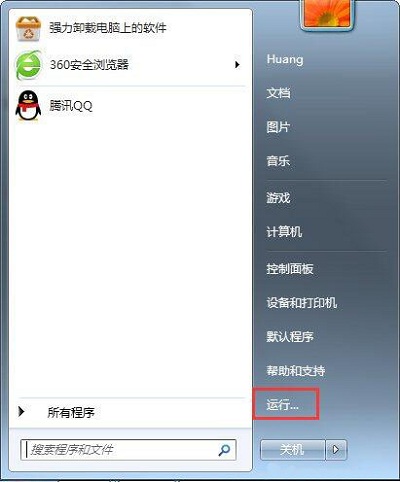 1、首先,我们打开电脑开始菜单中的运行。如图所示: