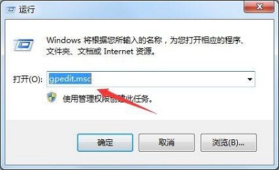 1、点击左下角的开始图标,选择【运行】,在【打开】一栏中输入【gpedit.msc】并点击【确定】。如图所示: