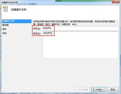 4、在弹出的窗口中,在输入框中输入【名称】、【描述】,之后选择【下一步】来进入下一步操作;如图所示: