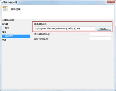 8、在【启动程序】窗口中,点击浏览,选择任一程序或脚本,之后选择【下一步】;如图所示:
