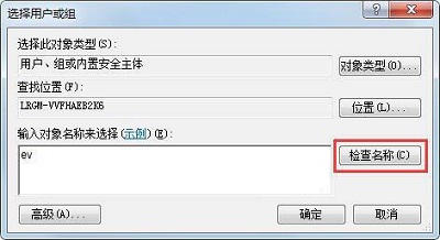 9、在弹出的对话框中输入:ev 然后点击检查名称;如图所示: