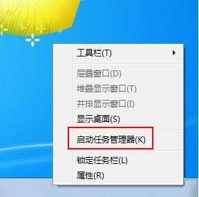 2、在任务栏中点击右键-启动任务管理器;如图所示: