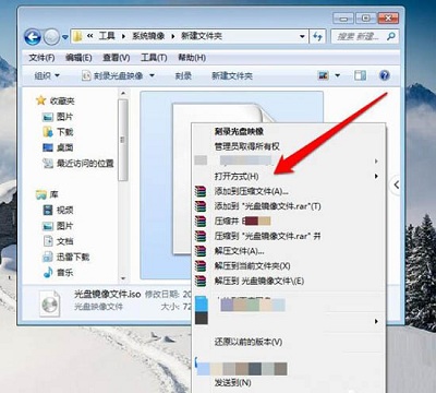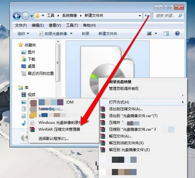 3、选中光盘镜像文件后,使用鼠标右键点击弹出菜单选择打开方式;如图所示: