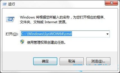 1、开始》运行》输入“C:\Windows\SysWOW64\cmd”后确定,启动《命令提示符》程序;