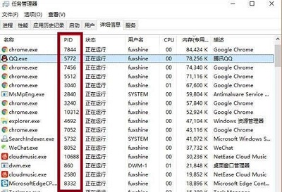 先在任务管理器中,转到“详细信息”一栏,查看下你想关闭程序的”PID“(程序进程编号)是什么。
