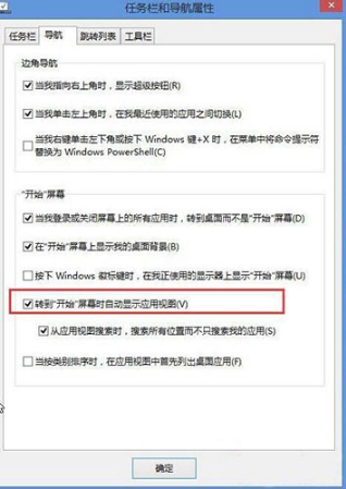 3、勾选“转到“开始”视图时自动显示应用视图”,如图: