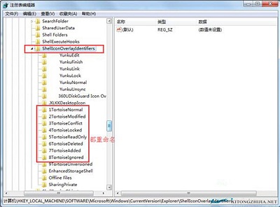 2、在打开的注册表中,按下Ctrl+F,在注册表里搜索“ShellIconOverlayIdentifiers”;