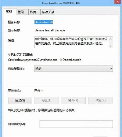 5、检查Windows Audio服务是开启的,之后检查有一项服务Device Install Service服务是已停止状态。点击“启动”将此服务开启后设备管理器声卡驱动显示正常了,声卡工作也正常了,如图: