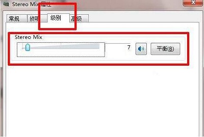 6、双击stereo mix属性,进入菜单后选择“级别”并调整好合适的混合音的音量。设置完毕后点击“确定”。如图所示: