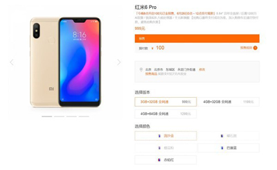 红米6 Pro共有三款产品,其中3GB+32GB版本售价999元,4GB+32GB版本售价1199元,而4GB+64GB售价1299元。