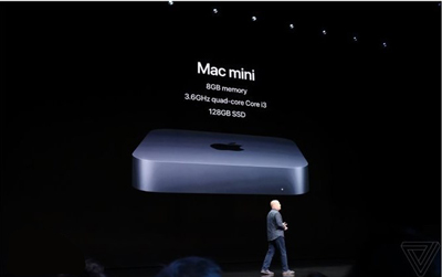 新款Mac mini标准版配置为8GB内存、4核心处理器、128GB SSD,价格为799美元(未含税约合人民币5560元)。