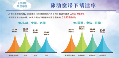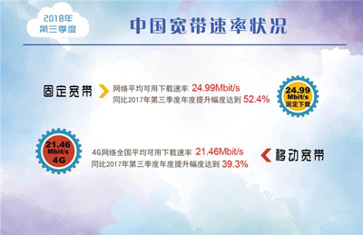 《中国宽带速率状况报告》(2018年第三季度)已经公布,数据显示,我国2018年第三季度移动宽带4G网络平均下载速度是21.46Mbit/s(2.68 MB/s),与去年同期相比平均速度上提升了39.3%。