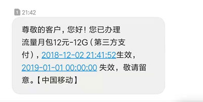 充值成功后,收到如下短信▼