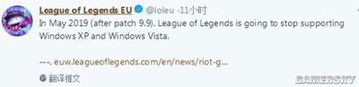 《英雄联盟》欧洲官推@loleu宣布,《英雄联盟》将停止对Windows XP和Vista系统的支持。