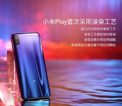 设计方面,小米Play采用浸染工艺,渐变效果自然细腻,提供暮光金、梦幻蓝和黑色三种配色。