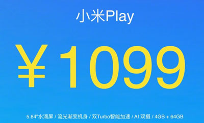 拍照方面,小米Play前置800万像素单摄,支持人脸解锁、单摄虚化;后置1200万+200万像素AI双摄,支持AI人像模式、背景虚化、多帧降噪及自动HDR功能;续航方面,小米Play内置3000mAh电池。