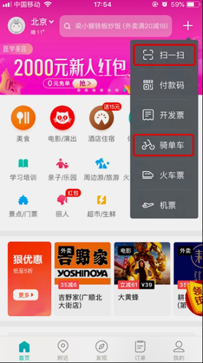 据了解,用户现在打开美团APP,点击右上角“+”,选择“扫一扫”或者“骑单车”,就可以使用摩拜单车服务。