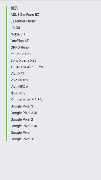 Android Q Beta 版页面显示,华为 Mate 20 Pro 已经不见踪影,华硕 ZenFone 5Z、Essential Phone、LG G8、诺基亚 8.1、一加 6T、OPPO Reno、realme 3 Pro、索尼 Xperia XZ3、传音 SPARK 3 Pro、vivo X27、vivo NEX S、vivo NEX A、小米 9、小米 MIX 3 5G 版、谷歌 Pixel 3、Pixel 3 XL、Pixel 2、Pixel 2 XL、Pixel 和 Pixel XL 这些设备仍然可以获得 Android Q Beta 版更新。