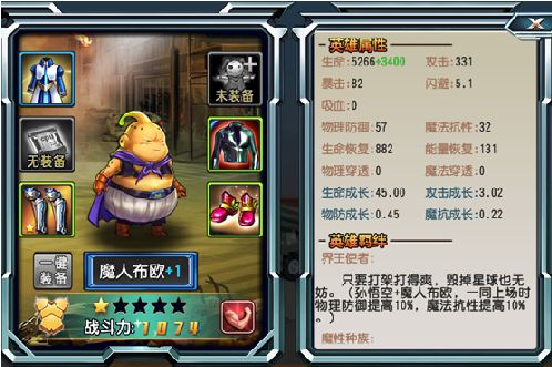 五小强中必练的一名英雄,核心技能是第二招——气功掌,可以为全队增加攻击和攻速。大招和第三技能也有着不错的输出,最主要的是升星非常容易,第五章的时候就能每天刷三个灵魂石本了。