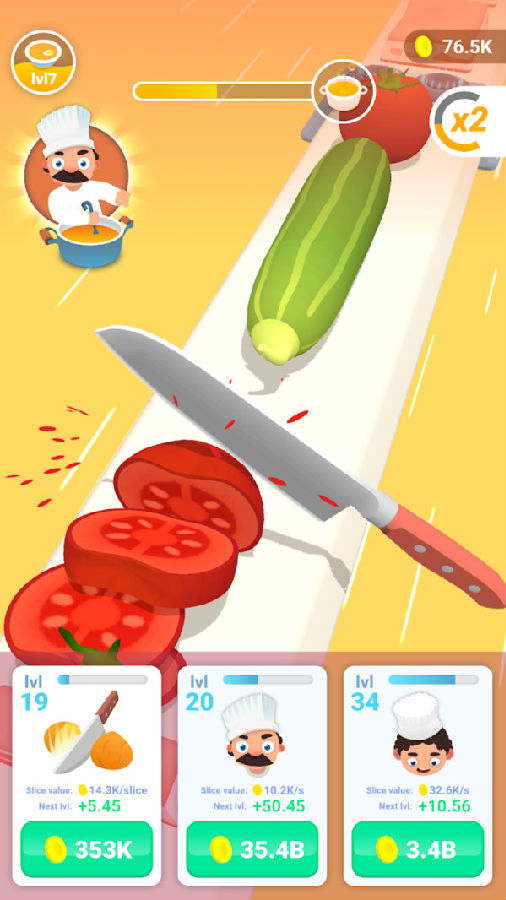 2、逼真的游戏音效,真实的水平发挥,菜刀越锋利,你的切菜速度也就越快;
