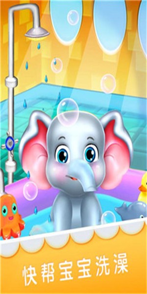 6.勤帮这只可爱的小象洗澡,这样他才能够香喷喷的,露出开心的笑容;