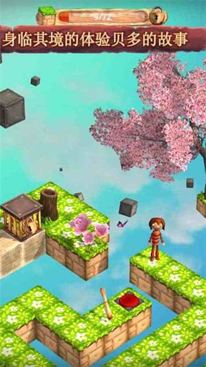 1、玩家需要控制着自己手中的可爱木头人进行冒险,通过各种不同的机关和道具,解开各种场景中的谜题。