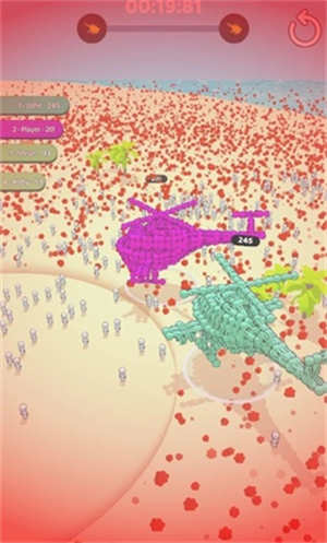 1、每场挑战都是一场全新的体验,玩家可以在游戏当中与不同的对手进行刺激的对决,快速收集所有的小人来击败它们;